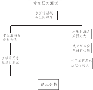 在管道壓力測(cè)試實(shí)施前先分析測(cè)試方案存在的風(fēng)險(xiǎn)程度,再確定試壓方案,流程下: