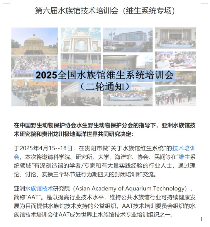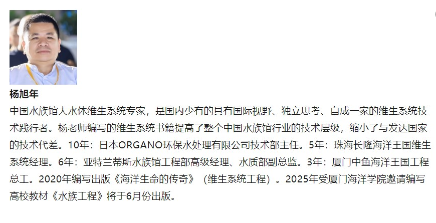我司總工楊旭年先生接受亞州水族技術(shù)研究院的邀請,在2025年4月15至18日出席在貴陽舉辦的第六國際水族館交流培訓(xùn)會,任《海洋館維生系統(tǒng)設(shè)計》課程講師,課程主要內(nèi)容包括: