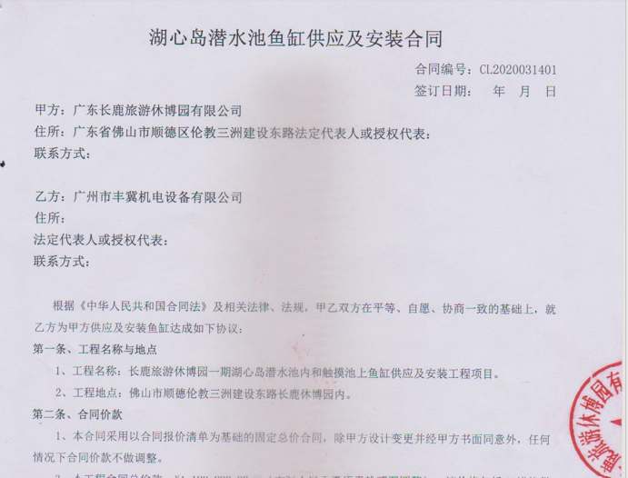 豐冀水族承接廣東長鹿農(nóng)莊湖心島魚缸工程45套,合同額215萬元(其中海草魚缸25套、珊瑚缸20套),目前已通過竣工驗收,2021年春節(jié)全面對游客開放,魚缸工程從魚缸設(shè)計、景觀造型、安裝調(diào)試一條龍服務(wù),豐冀水族精湛的技術(shù)得到客戶的好評!
